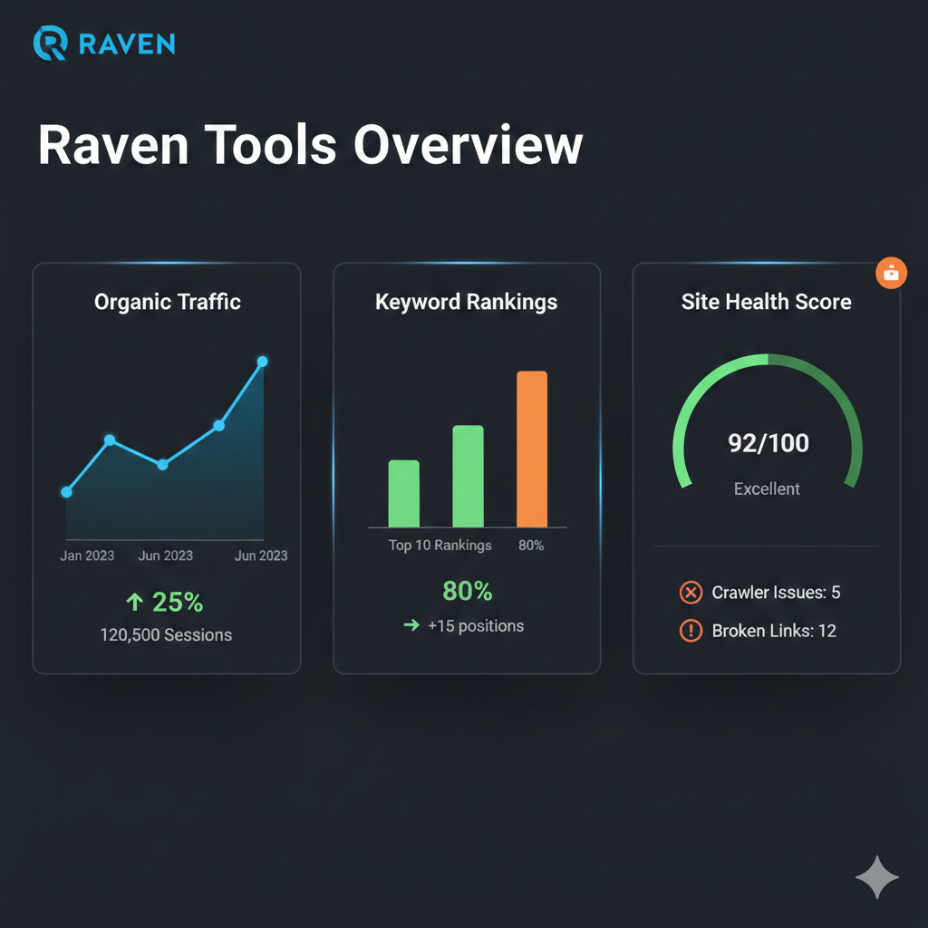 Raven Tools is an all‑in‑one SEO and reporting platform that helps marketers audit websites, track rankings, analyze competitors, and turn all that data into clean client reports. It is especially popular with agencies that need to manage multiple sites and channels from a single dashboard.