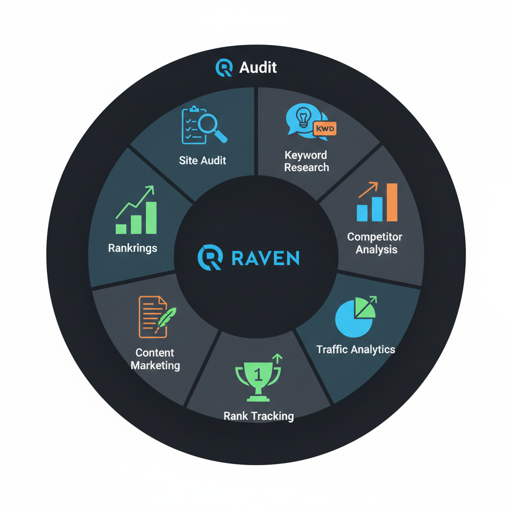 Raven Tools is a cloud‑based SEO and digital marketing suite that brings site audits, keyword data, competitor insights, rank tracking, and multi‑channel analytics into one reporting‑focused platform. It integrates with major data sources like Google Analytics, Google Search Console, and third‑party SEO providers (Moz, Majestic, etc.) so you can centralize performance tracking.